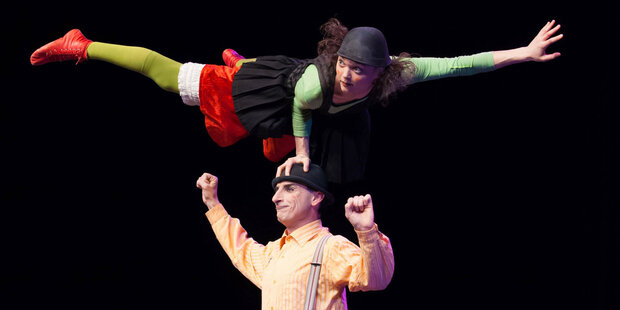 Dans une mise en scène unique et hilarante, saluée unanimement par la critique internationale, deux étranges personnages évoquent – sans un mot – l’ennui, la colère, la joie ou encore l’amour, uniquement par le langage du corps et le jeu de regard. Avec eux, pas de nez rouge ni de grande chaussure, ces deux circassiens virtuoses puisent leur inspiration dans la comédie physique à l’instar de Charlie Chaplin ou Buster Keaton. Au sommet de son art, le duo s’approprie le plateau avec seulement une échelle et une pomme, dans une simplicité trompeuse, qui donne furieusement envie de rire et d’être heureux. Avec insouciance, aussi touchants que désopilants, ils offrent une prestation à couper le souffle, qui déride à coup sûr les zygomatiques !