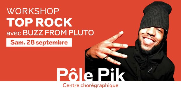 En parallèle des ateliers de transmission menés par les danseurs de la compagnie Dans6T accompagnés des professeurs de Pôle Pik, chaque mois, un workshop technique est proposé pour vous permettre d’approfondir un style de danse. Samedi 28 septembre, Buzz from Pluto propose un workshop top rock, à destination des danseurs au niveau intermédiaire. De 13h à 14h30, le workshop débute par un atelier de top rock, avant de poursuivre de 15h à 16h30 avec un atelier footwork & recherches au sol. L’occasion d’approfondir votre niveau de top rock, ou de débuter cette discipline si vous pratiquez déjà le break ! En savoir plusS'inscrire en ligne